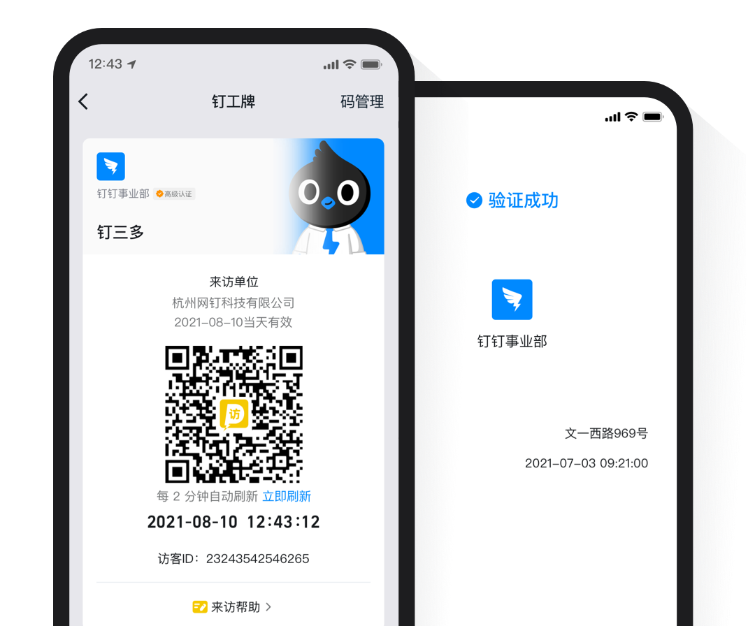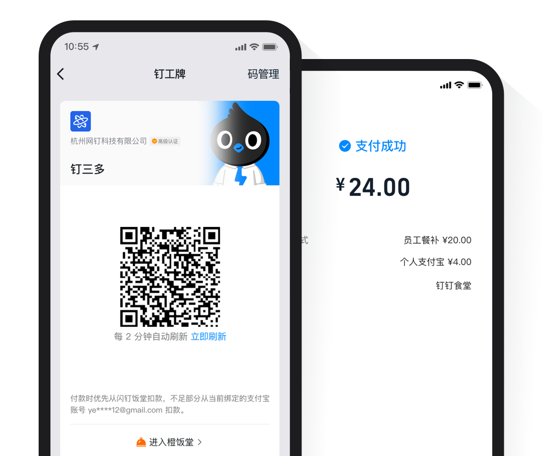 釘工牌 將傳統工牌的身份驗證融合到釘釘上,同時結合支付能力,滿足組織內需要驗證身份和支付的場景。